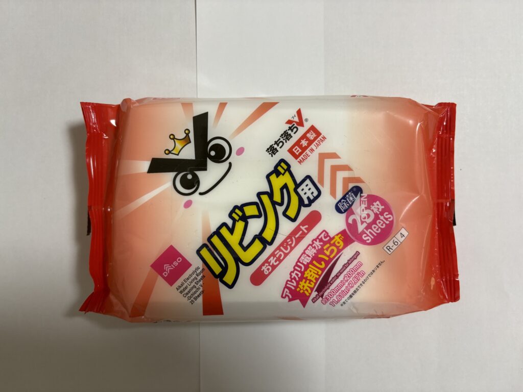 リビングの床や家具まわりの汚れをサッと拭ける、アルカリ電解水タイプの掃除シートです。